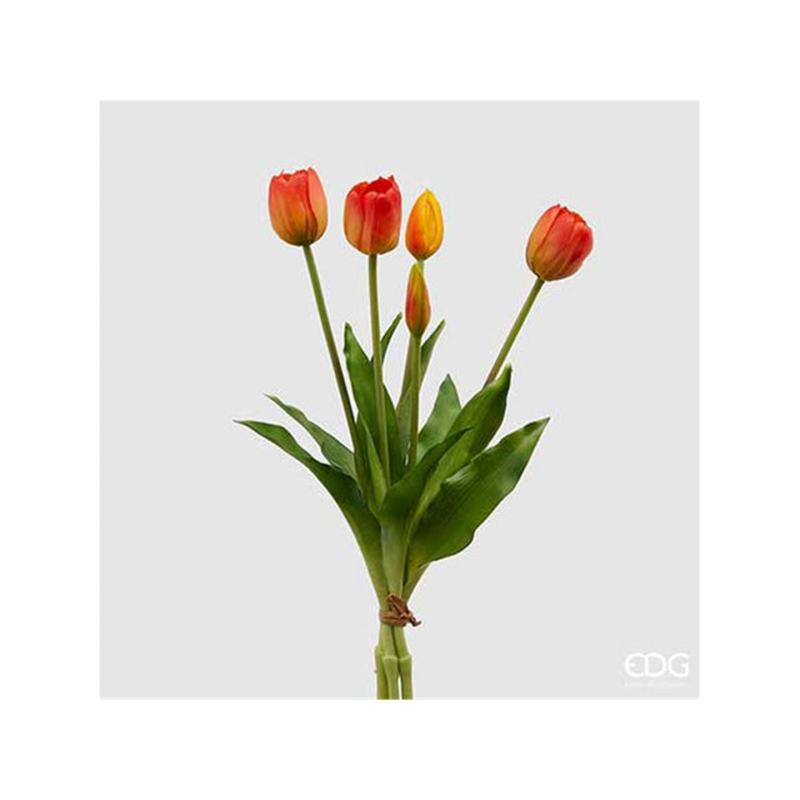 Artificial rubber tulip, orange color, height 40 cm, pack of 5 pieces. Made by EDG - Enzo De Gasperi.