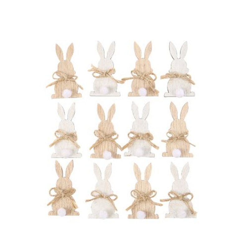 Coniglietti Legno Con Pompon 12pz | Artyfetes Factory