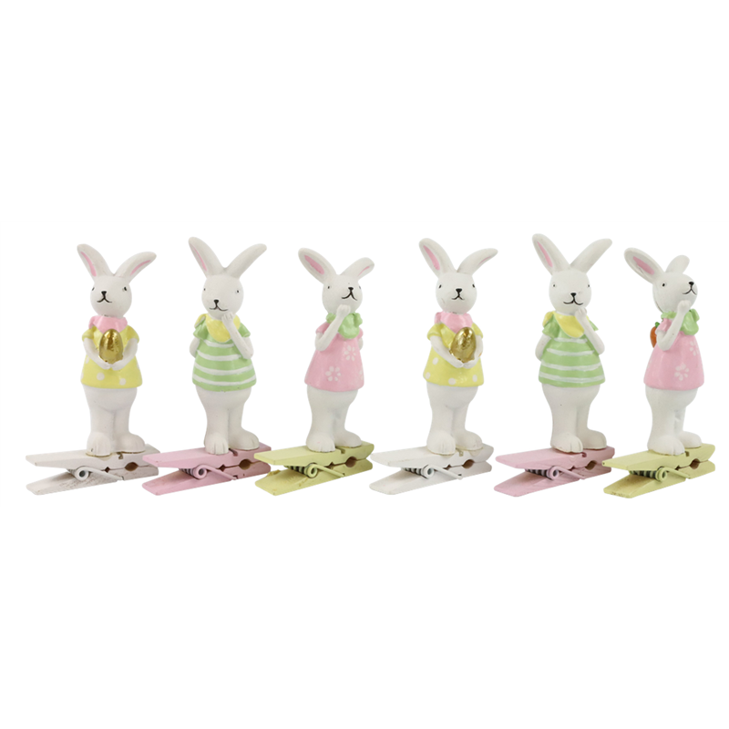 Polyresin Clip With Rabbit 13cm 6pcs Pastel | | Hoff-Interieur