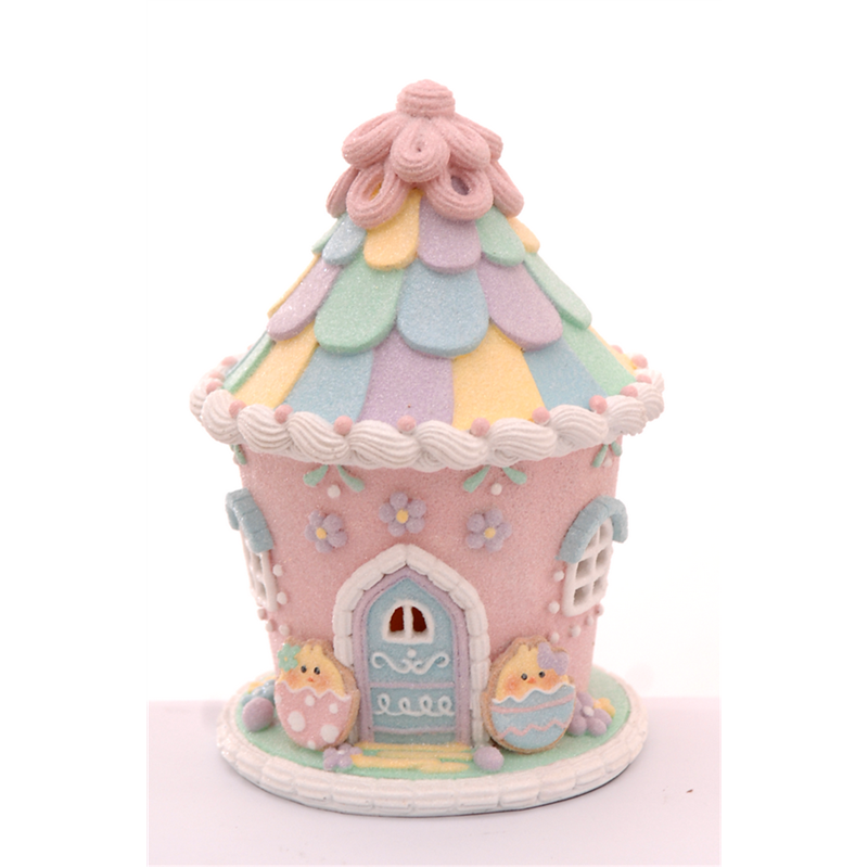 Polyresin Bunny House With Led 20.5cm Pink | Vertecchi Selection. | Selezione Vertecchi