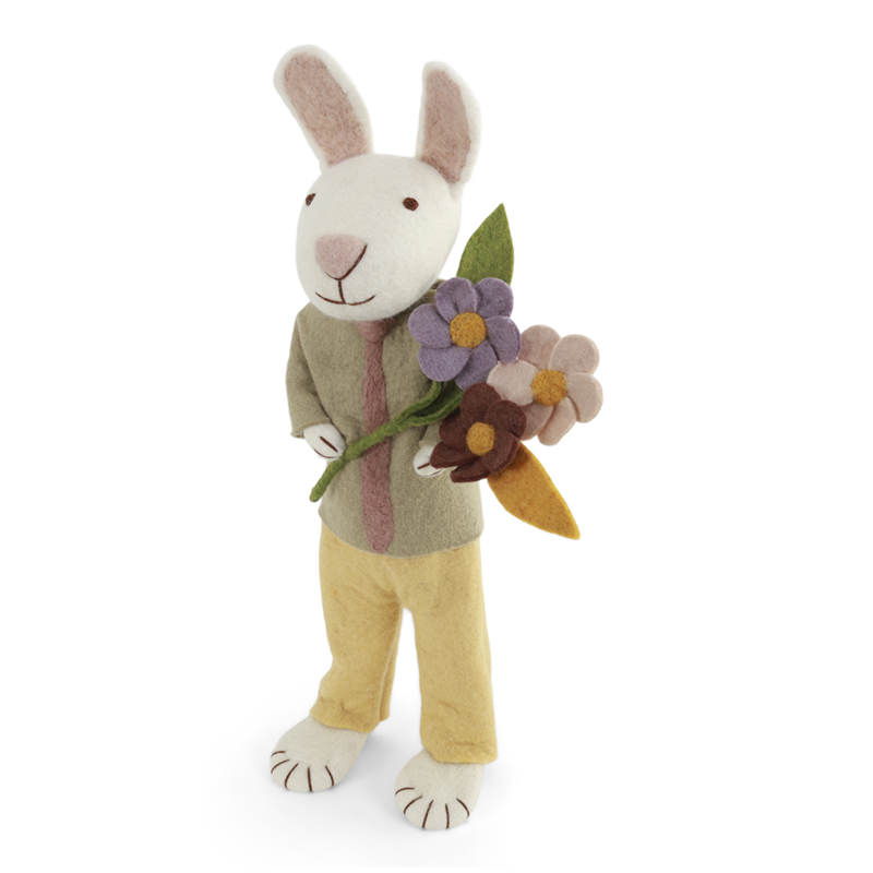 Bunny Wool Tie And Flowers H65cm | Vertecchi Selection | Selezione Vertecchi