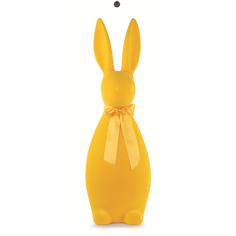 THE VERTECCHI SELECTION'-S 1320CM YELLOW FLOCKED DECORATIVE RABBIT IS A DISTINCTIVE AND EYE-CATCHING DECORATIVE ELEMENT, IDEAL FOR ENRICHING INTERIOR SPACES WITH A TOUCH OF VIBRANT COLOR. MADE WITH A HIGH-QUALITY FLOCKED FINISH, IT HAS A SOFT-TO-TOUCH TEXTURE THAT ADDS ELEGANCE AND ORIGINALITY TO THE DESIGN. WITH ITS IMPRESSIVE HEIGHT OF 1320 CM, THIS RABBIT IS PERFECT FOR CREATING A FOCA POINT IN LARGE SPACES, SUCH AS LIVING ROOMS OR SHOWROOMS, AND IS WELL-FIT FOR SPECIAL EVENTS OR SEASONAL INSTALLATIONS. THE BRIGHT YELLOW COLOR HELPS CREATE A CHEERFUL AND WELCOMING ATMOSPHERE.