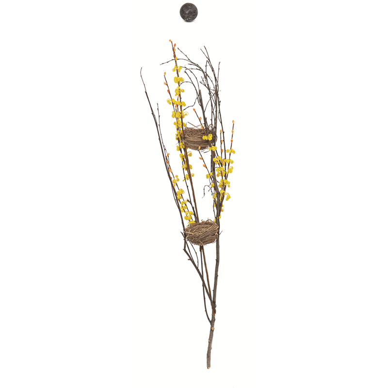 A 70 cm decorative branch featuring nests and small yellow flowers, ideal for enhancing floral arrangements and interior spaces. The Vertecchi selection guarantees quality and attention to detail, adding a touch of natural elegance to any space. Perfect for those seeking a distinctive, spring-like accent to their decor.