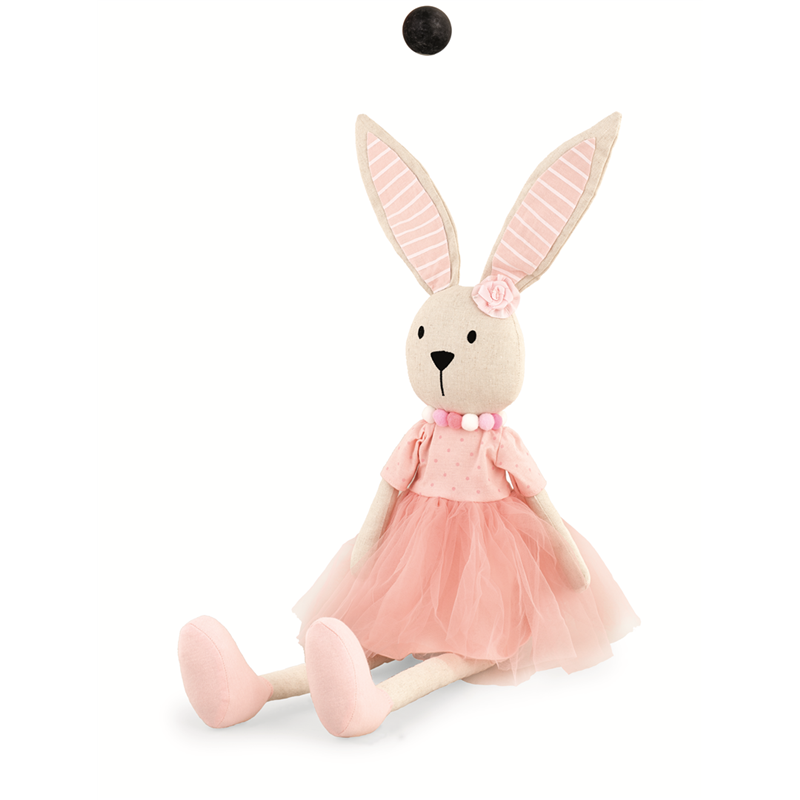 PINK FABRIC SEATED BUNNY, 75 CM HEIGHT, PART OF THE VERTECCHI SELECTION. A DELICATE AND REFINED FURNISHING ACCESSORIES, IDEAL FOR DECORATING SPACES WITH A TOUCH OF TENDERNESS AND COLOR.
