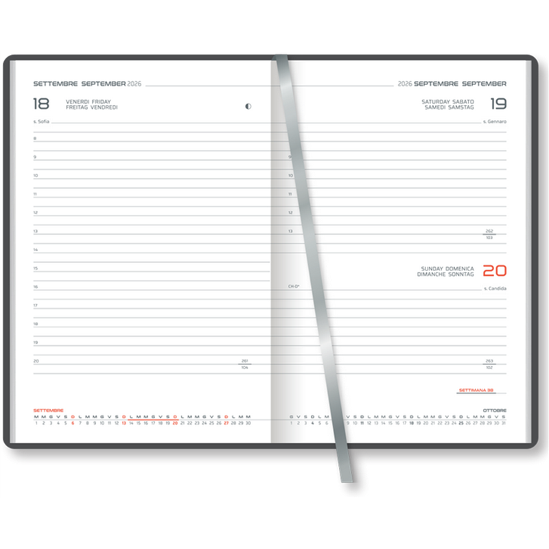 I05 SESTINA, 11X16.5, DAILY L/D COMBINED, 4 LANGUAGES: I-GB-FD, WHITE PAPER 70 GR. FSC®, 320 PAGES, TWO COLOR PRINTING, GRAY BOOKMARK