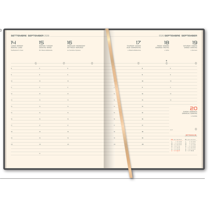 I17 WEEKLY, 17X24, WEEKLY, 4 LANGUAGES: I-GB-DF, IVORY PAPER 80 GR. FSC®, 144 PAGES INCLUDING PRINTED ADDRESS BOOK, TWO COLOR PRINTING, GOLD BOOKMARK