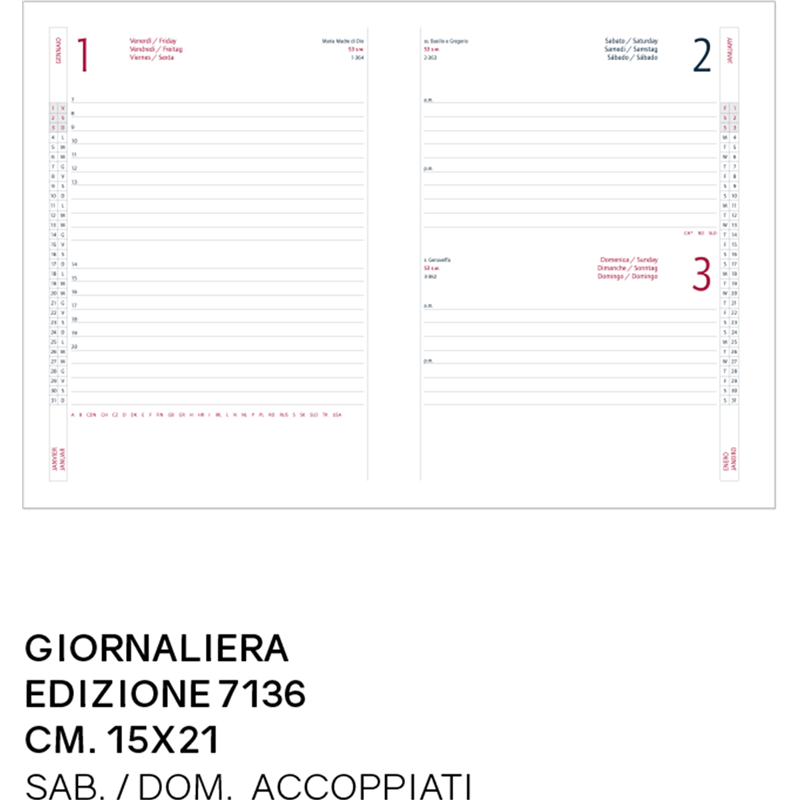 daily diary, balacron padded cover, pastel print, 60gr white paper, texts in i-gb-fdep