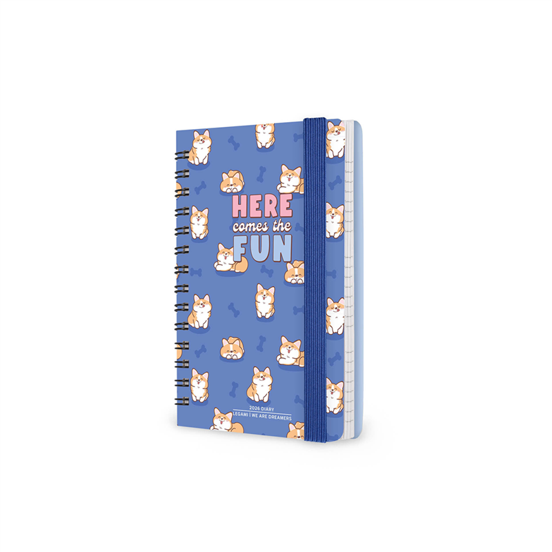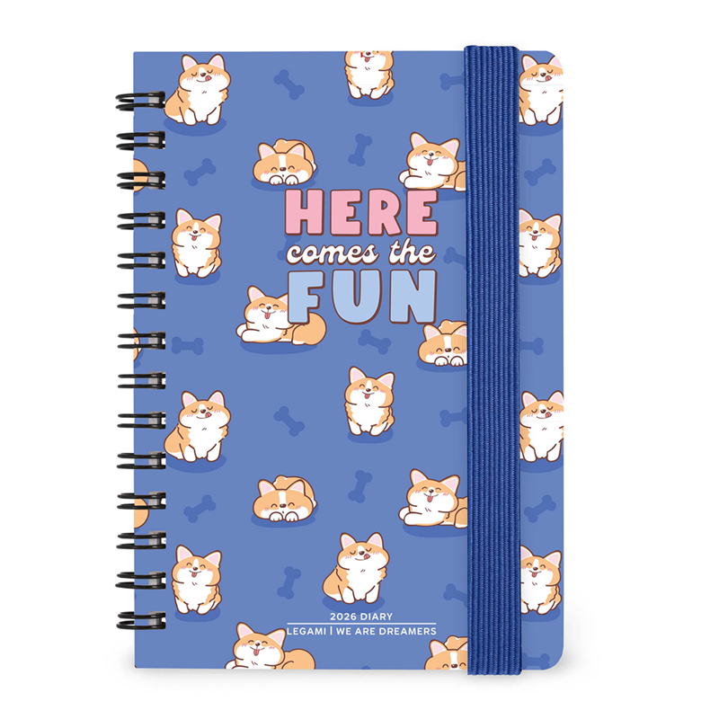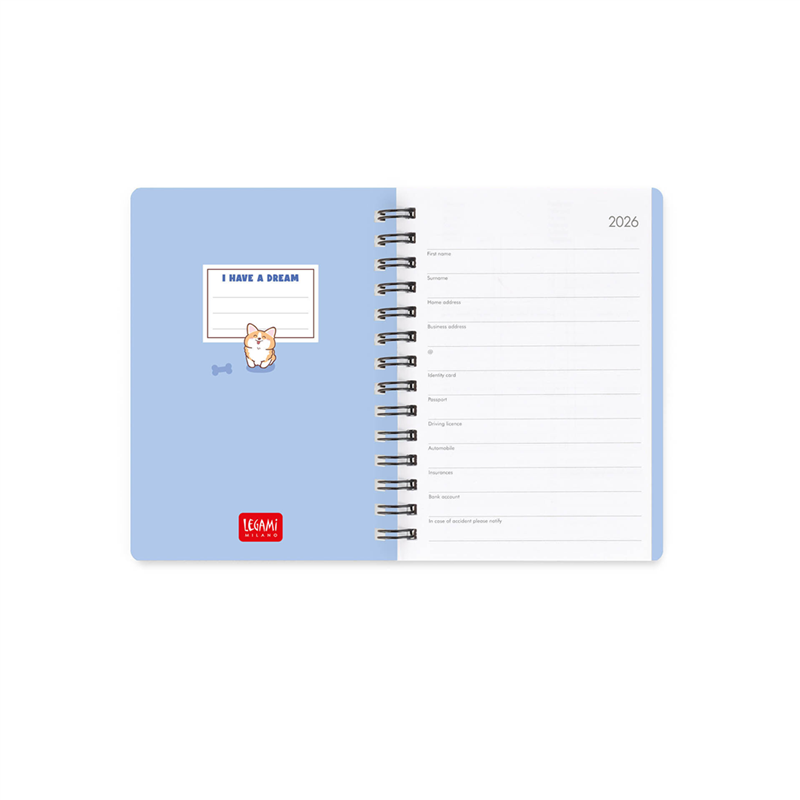 12-Month Weekly Spiral-Bound Small Diary Bo Blue Corgi 2026 | | Legami