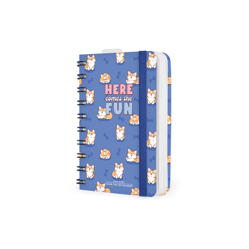 12-Month Daily Spiral-Bound Small Diary Agenda Blue Corgi 2026 | | Legami
