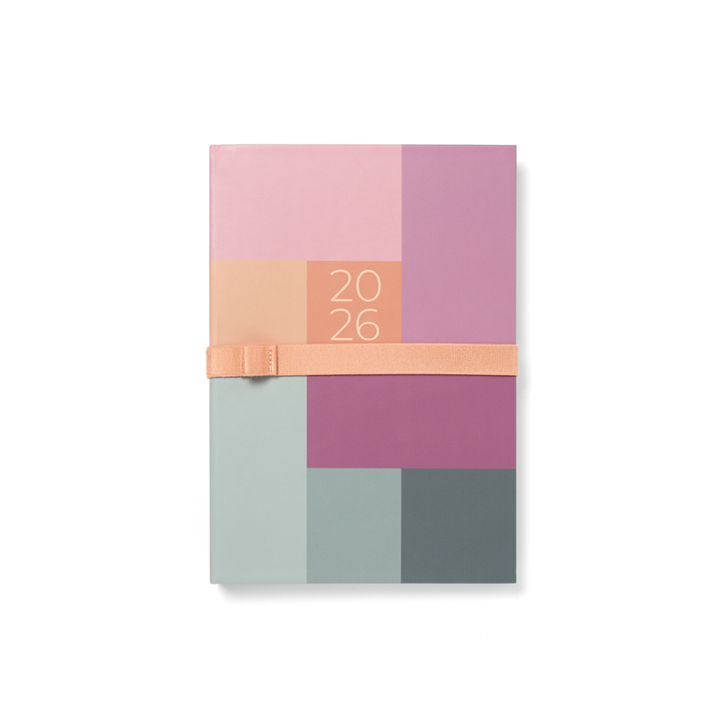 organize your days with style! gradient diaries feature a matt cover with a lively color block pattern. furthermore, this model stands out for its extreme practicality, thanks to the convenient elastic closure with the special ring you can always have your pen with you. color on request (blue, pink)