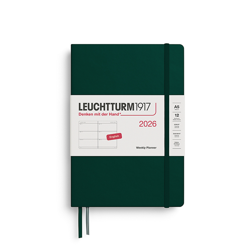 12m A5 Weekly Planner Hardcover With Notes 2026 Forest Green | | Leuchtturm 1917