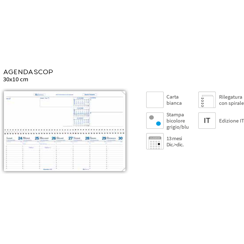 QUO VADIS - AGENDASCOP - WEEKLY PLANNING - ITALIAN - IMPALA - BLACK - 12 MONTHS FROM JANUARY TO DECEMBER - 30X10 CM - WHITE CLAIREFONTAINE PAPER