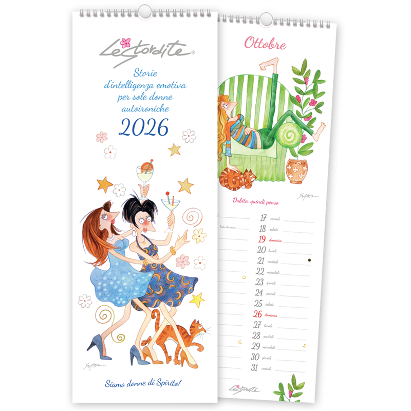 2026 Spiral-bound Calendar "-The Stunned"- - Dimensions: 44.5 x 16.5 cm. This calendar features vibrant and colorful illustrations of quirky and whimsical characters, perfect for adding a touch of humor and originality to your space. Each month is accompanied by unique and fun images, making daily planning a pleasant and inspiring experience. Printed on high-quality paper, it features sturdy spiral binding for ease of use and durability. An ideal addition for those who love quirky art and want to liven up their space with a distinctive design element.