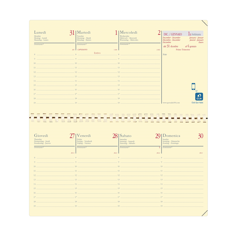QUO VADIS PLANITAL - WEEKLY PLANNING - ITALIAN - 13 MONTHS FROM DECEMBER TO DECEMBER - 8.8X17 CM - CLAIREFONTAINE IVORY PAPER