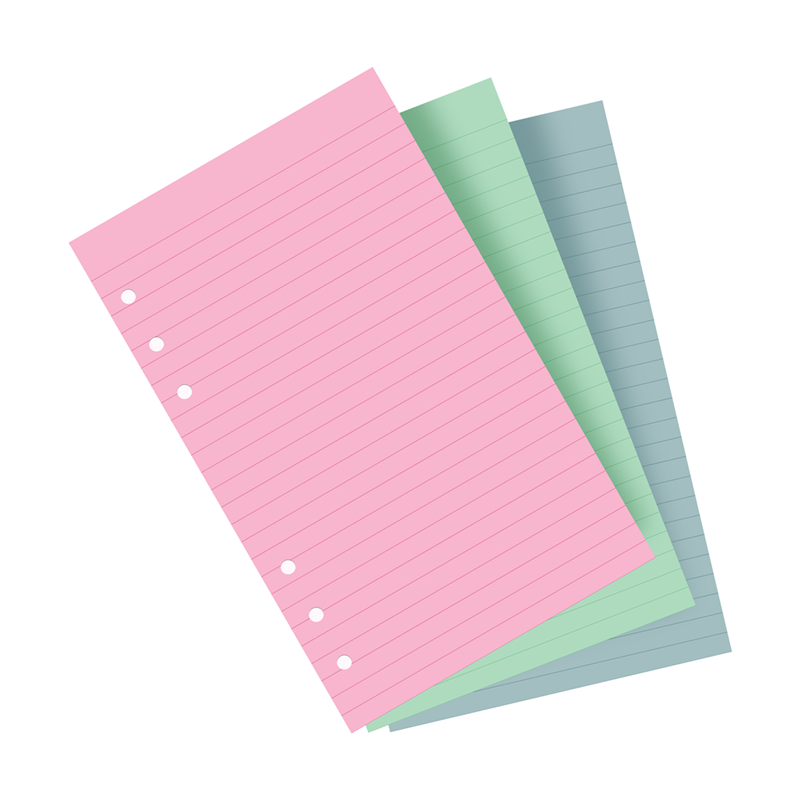 The Multicolor Fashion Ruled Refill Personal by Filofax is a set of refill sheets for Personal-sized planners, featuring colored lines that add a lively and fashionable touch to your notes and plans. Perfect for those who want to combine functionality and style in their daily planning.