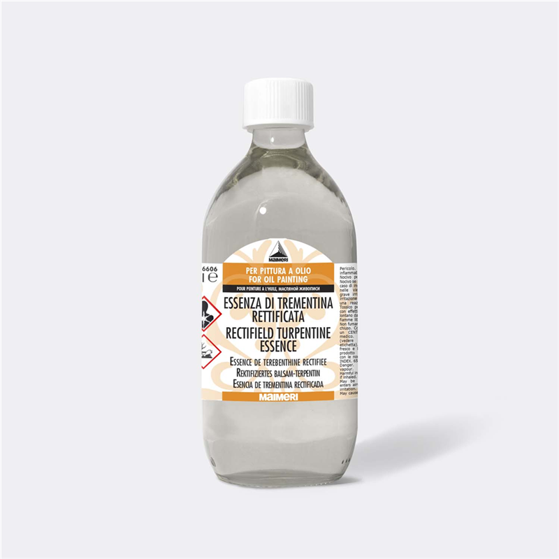 essential oil extracted from coniferous buds. vegetable solvent of ancient tradition. medium-slow evaporation. sensitive to light and air, when mixed with colors it tends to become opaque. also suitable for cleaning brushes.