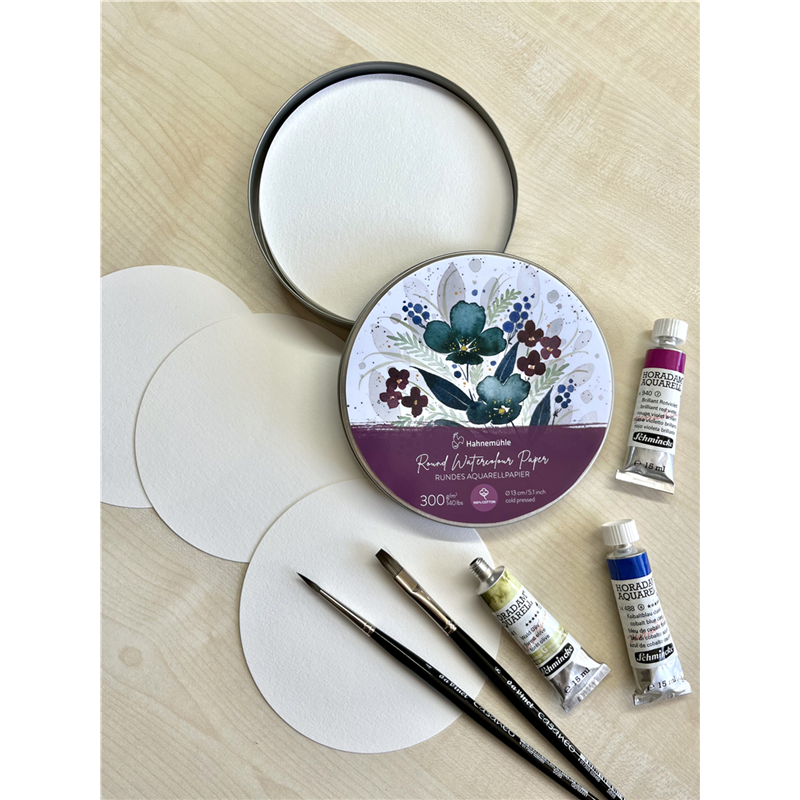 Round Paper � 13cm 300gsm 30 Sheets Watercolor 100% Cotton Metal Box | . | Hahnem�hle