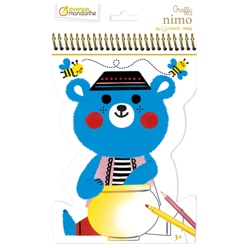 The Graffy Nimo Bear coloring pad by Avenue Mandarine is a creative album for children, ideal for developing artistic and motor skills. It contains bear drawings on high-quality paper, suitable for colored pencils, markers, or crayons. The spiral binding makes it easy to use and remove pages. Compact size for portability. Suitable for children over 3 years old.