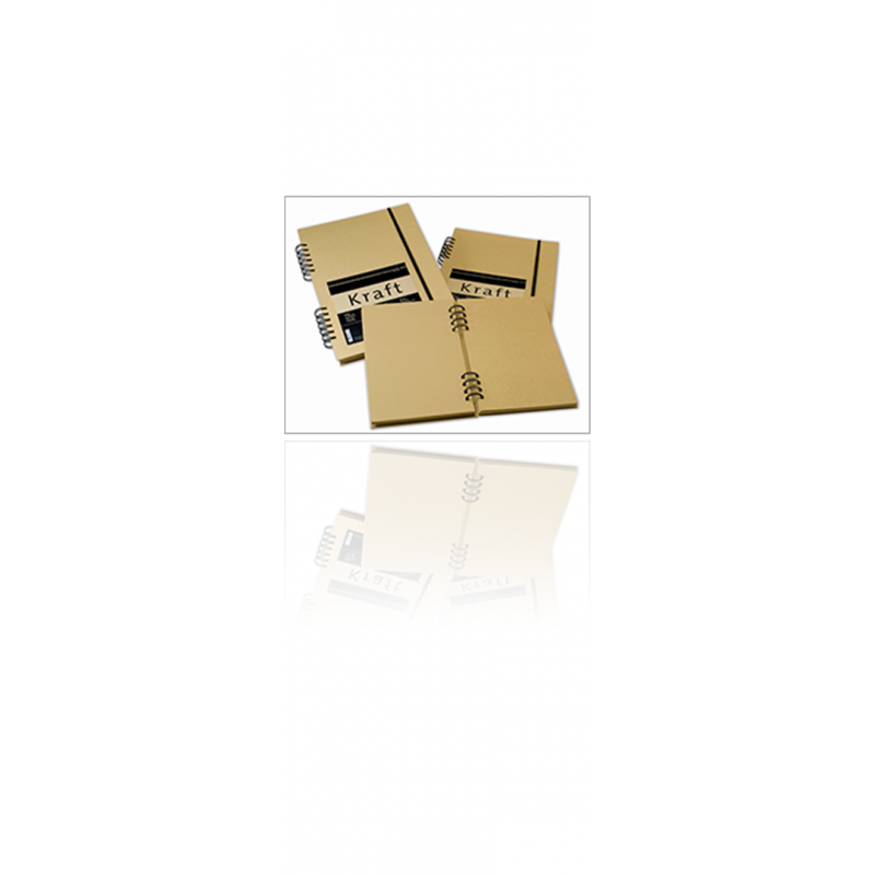 block with metal spiral in acid-free ocher colored kraft paper. with elastic closure. ideal for all dry techniques.