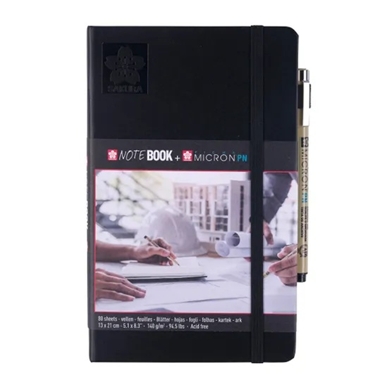 a complete range of notebooks designed for everyday use in the office or on the job site. available in three sizes, with hard covers. each notebook contains 80 sheets of 140 g/m² cream white paper, durable and suitable for intensive use. includes a pigma micron pn pen with permanent pigma ink.