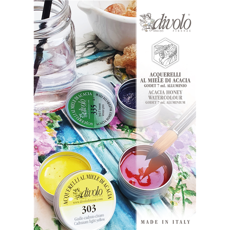 PRODUCTS BASED ON GUM ARABIC AND ACACIA HONEY. THEY REPRESENT A TRADITIONAL PRODUCT DESIGNED SPECIFICALLY FOR ARTISTS. ACACIA HONEY GIVES THE COLOR GREATER BRIGHTNESS, GIVES A SOFTER BRUSH STROKE AND SLOWER DRYING, ALLOWING BETTER BLENDING OF THE SHADES. THE SELECTION OF PIGMENTS AND RAW MATERIALS, THE MANUAL AND NON-INDUSTRIAL PRODUCTION CHARACTERIZE THE QUALITY OF THIS PRODUCT. THE COLORS ARE HIGHLY BRIGHT AND THE COLORS HIGHLY SOLUBLE.