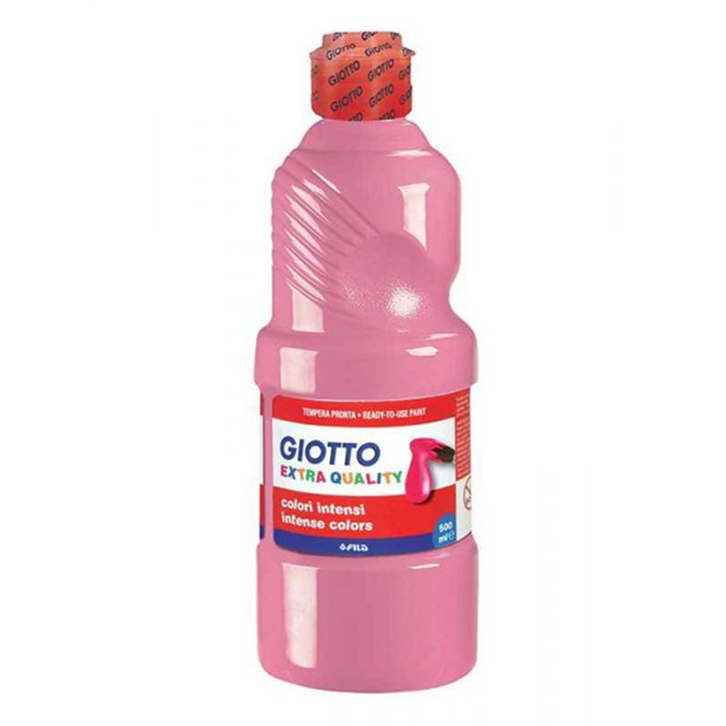Ready-to-use tempera paint in a 500 ml bottle, pink color, extra quality. Water-based formula, ideal for artistic activities. Bright color and easy to apply, suitable for paper, cardboard, and wood. Safe and non-toxic, compliant with toy safety regulations. Resealable cap for optimal product preservation.