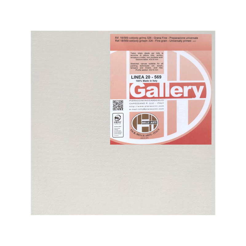 326g/m2 fine grain cotton/polyester rolled up and stapled on the back. with treated back. canvas frame ideal for all painting techniques (oil, acrylic, tempera and mixed), does not contain acids. universal preparation. frame section 43x18mm