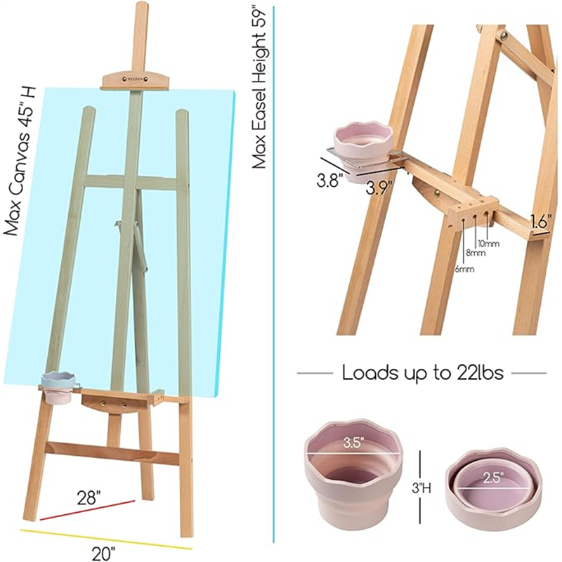 meeden Beech Wood Easel for Painting, Adjustable Height from 57"- to 76"-, Holds Canvas up to 43"-, Holds Canvas up to 22lbs, Art Display Easel.