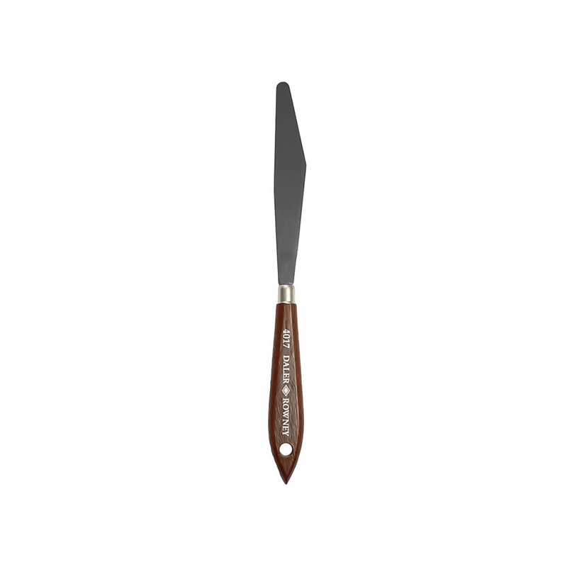 Daler Rowney Artists Palette Knife No.16 is an artist'-s tool made from high quality stainless steel with an ergonomic wooden handle. The blade is flexible, long and pointed, ideal for mixing, applying and scraping paint onto canvas. Perfect for palette knife painting techniques, it offers precision and control for textured effects.