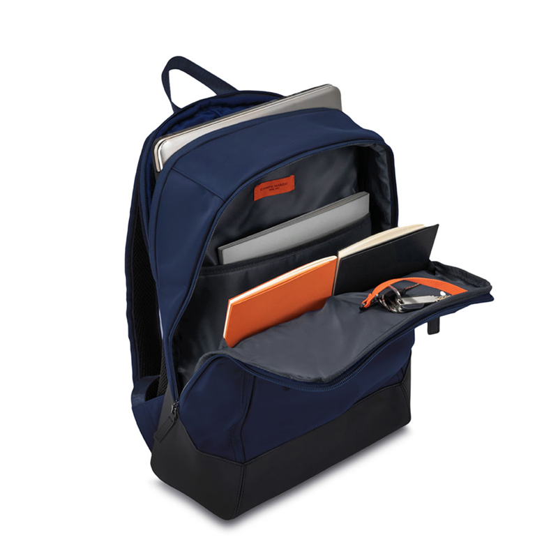 FUNCTIONAL, WATER-REPELLENT BACKPACK WITH A LINEAR DESIGN. MADE OF RECYCLED NYLON, IT OFFERS YOU ALL THE SPACE YOU NEED TO STORE DOCUMENTS, LAPTOP/MACKBOOK, TABLET/IPAD, POCKETS FOR BATTERY CHARGERS, 12/24H WATER BOTTLE, SMARTPHONE, UMBRELLA, BOOKS, CLOTHES, PENS AND EVERYTHING YOU NEED. THE CONVENIENT EXTERNAL POCKETS ALLOW YOU TO KEEP FREQUENTLY USE OBJECTS WITHIN REACH. IT IS PERFECT FOR THE OFFICE, FOR UNIVERSITY, FOR YOUR BUSINESS TRIPS AND WHEN MOVING AROUND THE CITY. FEATURES: ZIP CLOSURE. 2 COMPARTMENTS. EXTERIOR: 2 SIDE POCKETS WITH ZIP. INTERIOR: ORGANIZED WITH 2 COMPARTMENTS, ONE FOR A 16” LAPTOP (UP TO 30L X 40H CM) AND THE OTHER. WITH TABLET COMPARTMENT, 4 FLAT POCKETS, 2 PEN HOLDER COMPARTMENTS AND KEY HOOK. CARRY: ON THE SHOULDER. ADJUSTABLE SHOULDER STRAPS WITH MESH DETAILS FOR MAXIMUM COMFORT. MESH BACK, MAXIMUM BREATHABILITY. TROLLEY ATTACHMENT SYSTEM. DIMENSIONS: 32L X 42H X 14D CM- WEIGHT: 825 G
