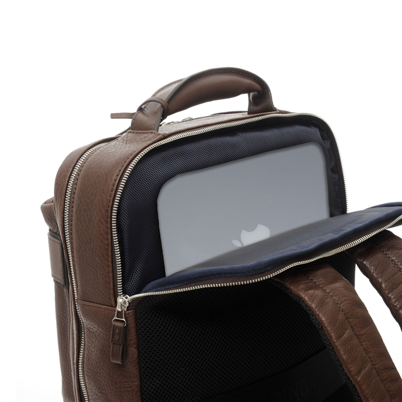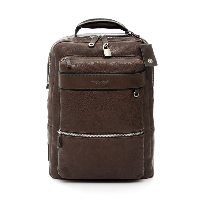 Crest Heritage Backpack Ltd Edition 2025. Limited edition backpack produced in only 60 numbered pieces. Material: natural Italian vegetable-tanned leather. Dimensions: 32x41x16 Weight: 1,370 g Capacity: 21 l Deep external front pocket. Another low external front pocket. Large central space with pocket for a laptop up to 15.6"-. Tablet pocket. Zip pocket. Brief history of Agspalding &- Bros printed on leather. Padded back pocket for a laptop up to 15.6"-. External back padded with breathable fabric, strap to insert a trolley. On the left side: leather label with the progressive limited edition number. Agspalding &- Bros tag certifying the limited edition backpack. Padded and ergonomic leather shoulder straps. Personalized padlock with leather case. Contained in a black cotton sleeve inside a black cardboard box bearing the progressive number of the limited edition.