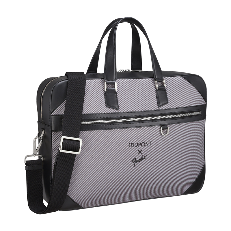 For the second time, St. Dupont and Fender® have collaborated to create a rock-inspired line that combines the expertise of both brands. This smooth calfskin and canvas document holder combines elegance and functionality with a contemporary touch. The elegant and distinctive Fender® metal tag pays homage to Fender®'-s musical universe, lending a modern touch to this model. A chic and practical men'-s bag, ideal for those who want to combine organization and style.