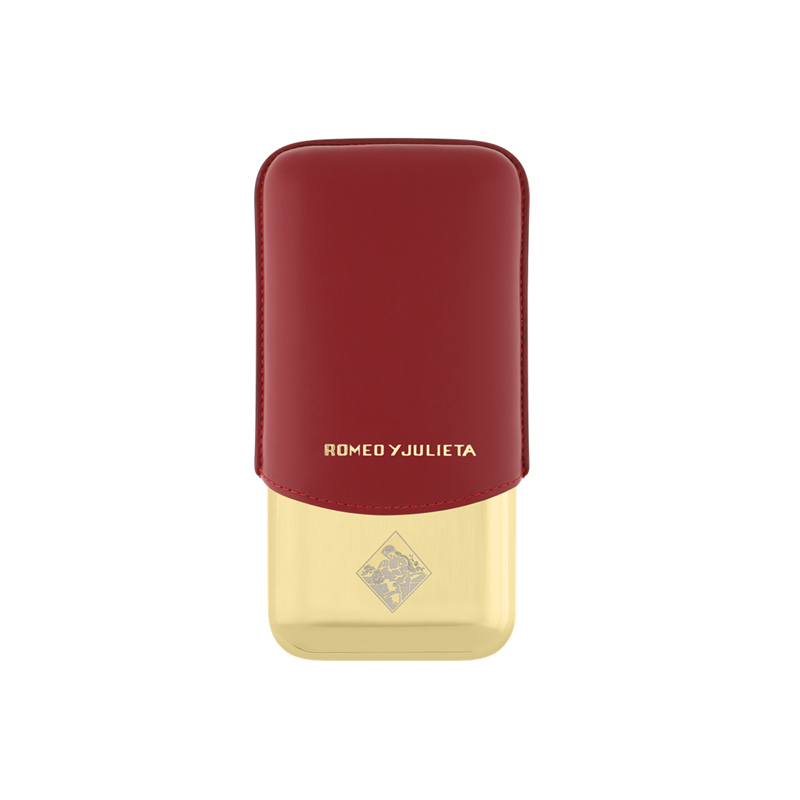 To celebrate 150 years of Romeo and Julieta, St. Dupont has created an exclusive collaboration, inspired by the power of passion and savoir-faire. A tribute to the art of exceptional cigars and the beauty of timeless objects. Three-cigar case with embossed gold Romeo and Julieta logo. Calfskin. Gold base with engraved Romeo and Julieta crest logo on the front and brand inscription on the back.