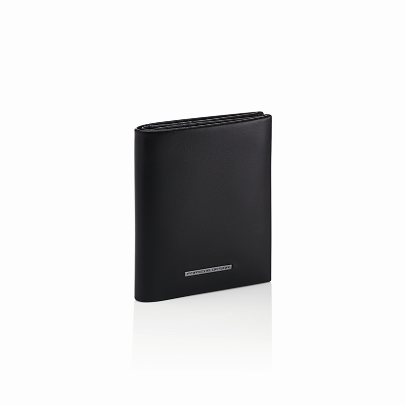 The elegant fusion of aesthetics and functionality: the Porsche Design Classic collection. The high-quality, glossy smooth leather in black, the perfectly finished exterior, and the distinctive Porsche Design logo plaque in metal give the Porsche Design Classic Billfold 6 US wallet a minimalist and timeless style. The high-quality interior finish perfectly matches the intelligent design: this men'-s wallet impresses with its great functionality in a small format. With six internal credit card slots, a compartment for notes, and two larger compartments, e.g. for business cards, this wallet offers space for all your important cards and receipts. Details: • Men'-s wallet in a small format in a timeless design • Smooth calfskin with a metal plaque with Porsche Design logo • Six credit card slots, two larger compartments for business cards • One compartment for notes • RFID protection