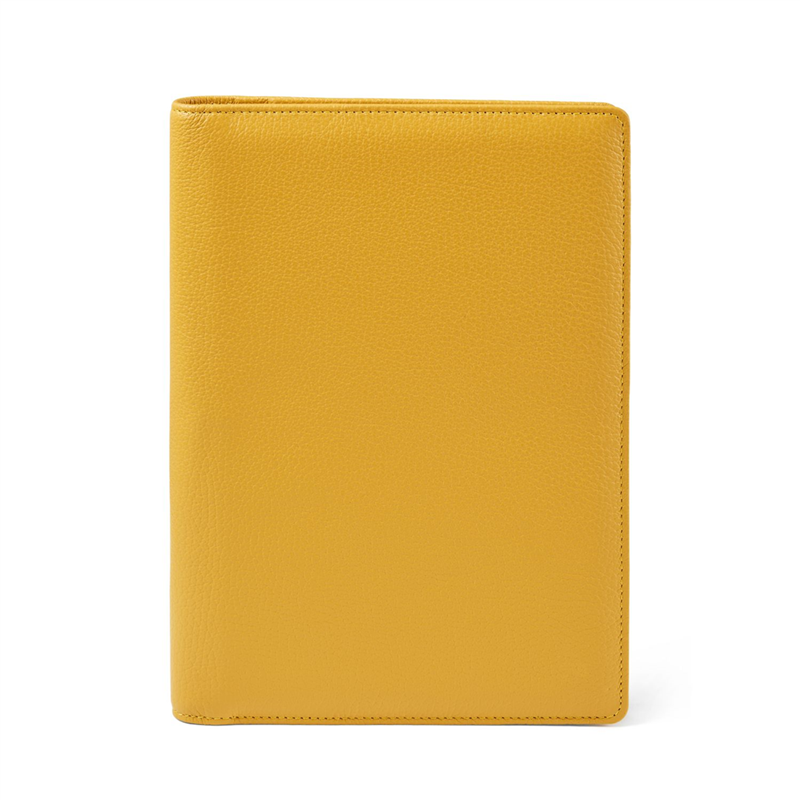YELLOW LEATHER A5 NOTEBOOK, ELEGANT AND FUNCTIONAL, IDEAL FOR DAILY USE. MADE WITH HIGH QUALITY MATERIALS, IT OFFERS A REFINED DESIGN AND DURABLE CONSTRUCTION. IT FEATURES INTERNAL COMPARTMENTS TO ORGANIZE DOCUMENTS, PENS AND OTHER SMALL ESSENTIALS. PERFECT FOR PROFESSIONALS AND STUDENTS WHO WANT A PRACTICAL AND STYLISH ACCESSORY.