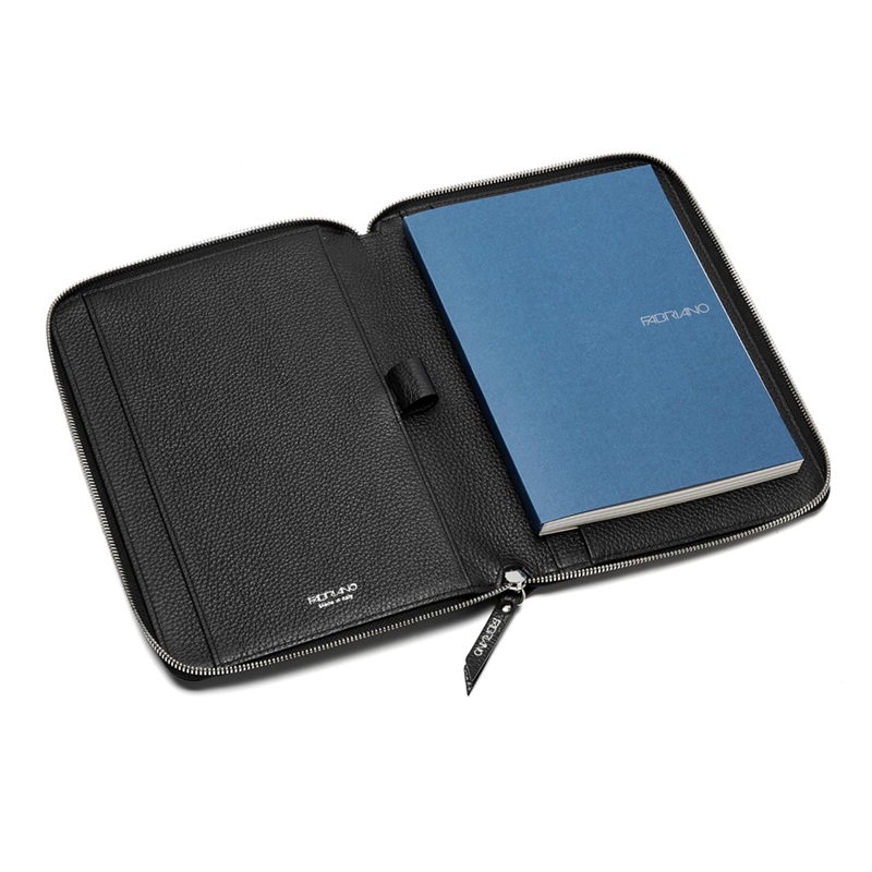HIGH QUALITY BLACK LEATHER A5 CLIPBOARD, ELEGANT AND FUNCTIONAL, IDEAL FOR PROTECTING AND CARRYING DOCUMENTS AND NOTES. REFINED DESIGN WITH NEAT FINISHES, PERFECT FOR PROFESSIONALS AND STUDENTS. EQUIPPED WITH A SAFE CLOSURE AND INTERNAL POCKETS FOR ACCESSORIES, IT OFFERS A TOUCH OF CLASS AND PRACTICALITY FOR DAILY USE.