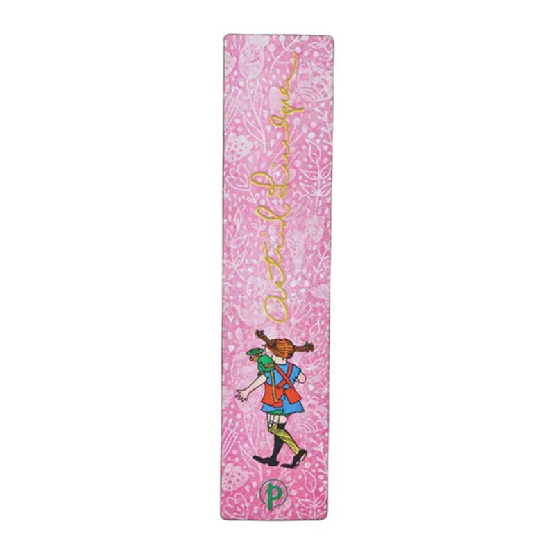 The Paperblanks Pippi Longstocking bookmark, measuring 40 x 185 mm, is an elegant and functional accessory inspired by the famous literary character. Crafted with Paperblanks'- signature quality, it features an attractive design that celebrates the originality and vivacity of Pippi Longstocking. Perfect for keeping track of your favorite reads, this bookmark combines practicality and style, making it an ideal gift for book lovers and lovers of children'-s classics.