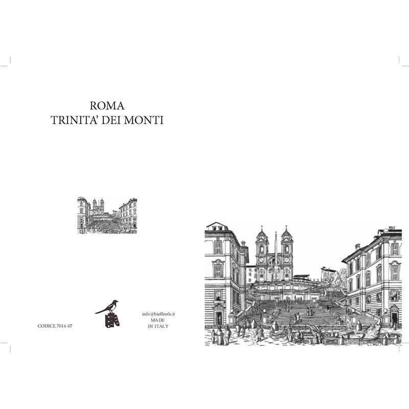 THE ROME TRINITY OF THE MOUNTAINS A5 NOTEBOOK IS AN ELEGANT, HIGH-QUALITY NOTEBOOK THAT CELEBRATES THE ICONIC BEAUTY OF ROME. THE COVER FEATURES A DETAILED ILLUSTRATION OF THE FAMOUS TRINITY OF THE MOUNTAINS STEPS, CAPTURING THE HISTORICAL AND ARTISTIC ESSENCE OF THE ETERNAL CITY. ITS INTERNAL PAGES, MADE OF HIGH-QUALITY PAPER, OFFER A FLUID AND PLEASANT WRITING EXPERIENCE. THIS NOTEBOOK IS PERFECT FOR THOSE LOOKING FOR A REFINED ACCESSORY TO RECORD THOUGHTS, NOTES, OR SKETCHES, CARRYING A PIECE OF ROMAN HISTORY AND CHARM WITH THEM WHEREVER THEY GO.