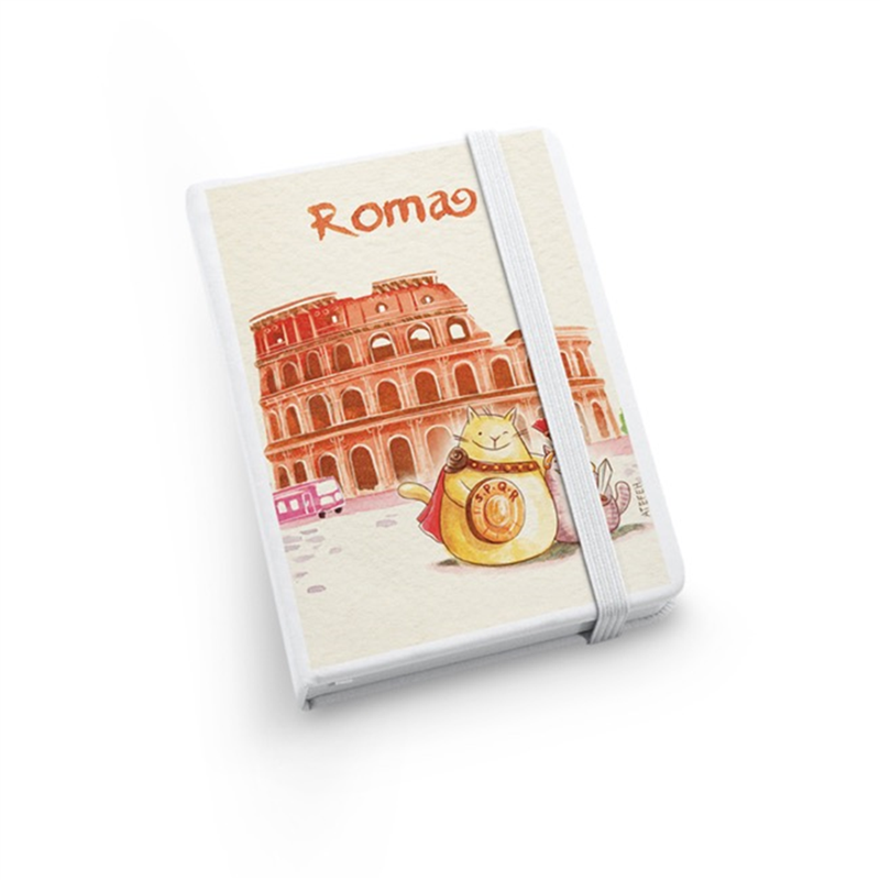 Elasticated Notebook A6 80 Blank Sheets Rome-Colosseum And Gladiator Cats | Vertecchi Selection | Selezione Vertecchi