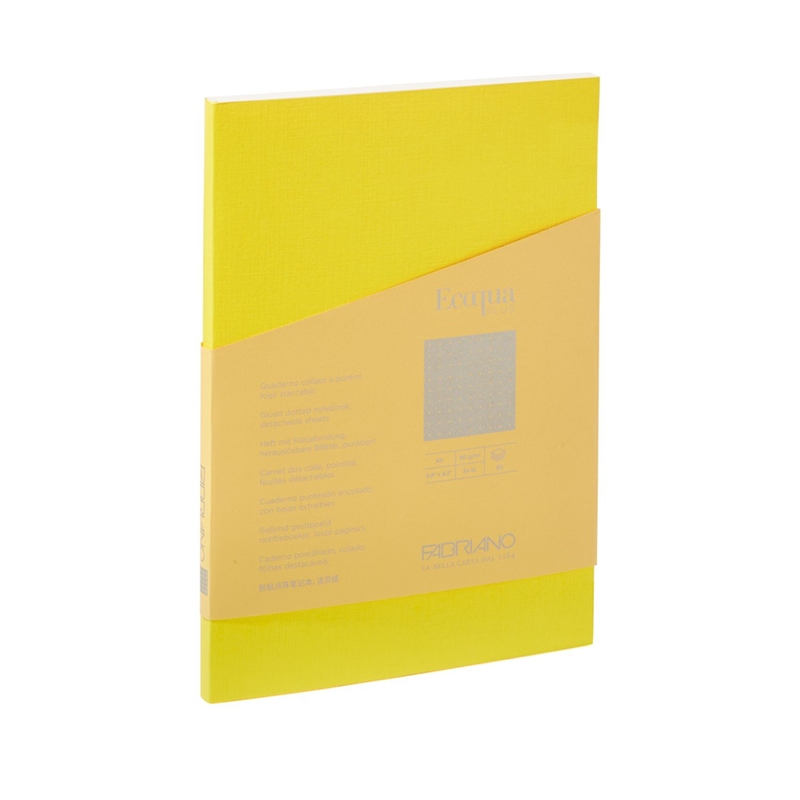 THE ECOQUA A5 DOTS GLUED LEMON NOTEBOOK FEATURES AN ELEGANT AND SUSTAINABLE DESIGN, FEATURING A LEMON-COLOURED COVER. THE PAGES ARE DOTTED, IDEAL FOR PRECISE WRITING OR DRAWING, AND ARE MADE WITH HIGH-QUALITY ECO-FRIENDLY PAPER, ENSURING A SMOOTH WRITING EXPERIENCE. THE GLUED BINDING ENSURES ROBUSTNESS AND PRACTICALITY, MAKING IT PERFECT FOR DAILY USE.