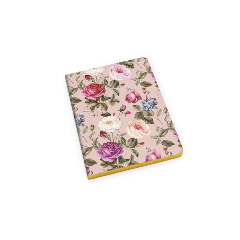 A5 NOTEBOOK WITH SOFT COVER, GOLD EDGES AND 192 PAGES, DECORATED WITH AN ELEGANT ROSE MOTIF. PRODUCED BY TOSCANA CARTE PREGIATE SRL, IT REPRESENTS A COMBINATION OF REFINEMENT AND ARTISANAL QUALITY.
