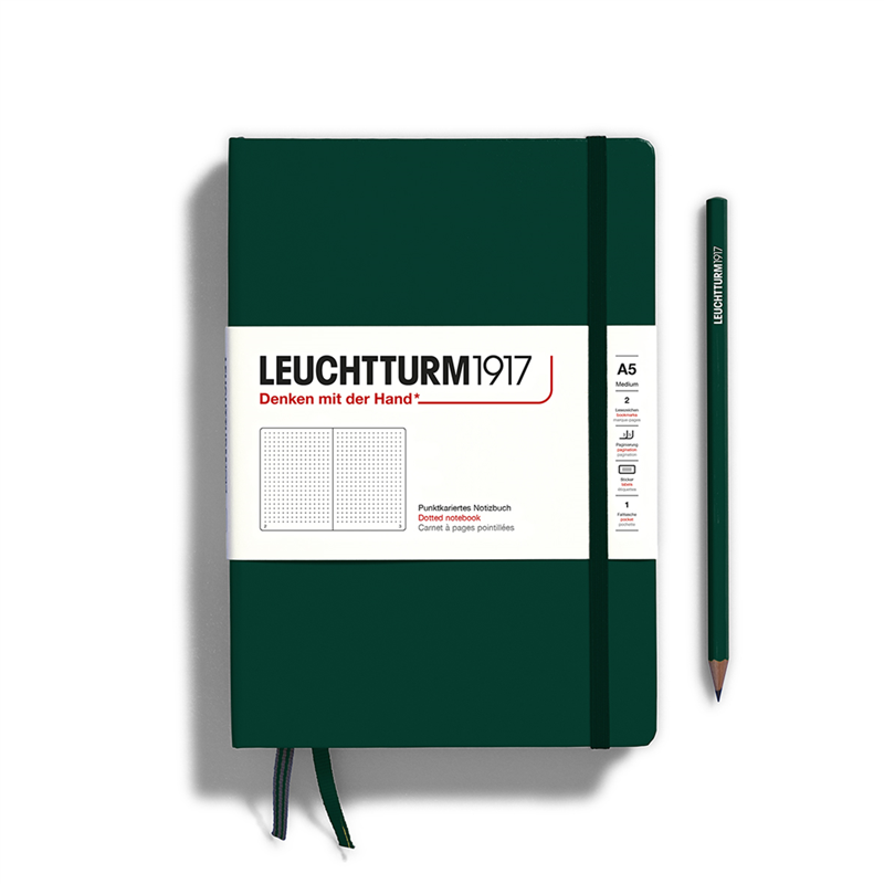 Medium A5 Hardcover Notebook, Dotted 249 Pages Forest Green. | Leuchtturm 1917