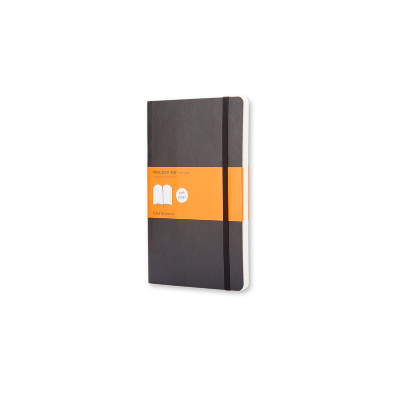 soft cover, pocket size 9x14cm 192 lined pages. sewn bound with rounded corners, chlorine-free paper, a bookmark and elastic closure. an expandable internal pocket that contains the moleskine story.