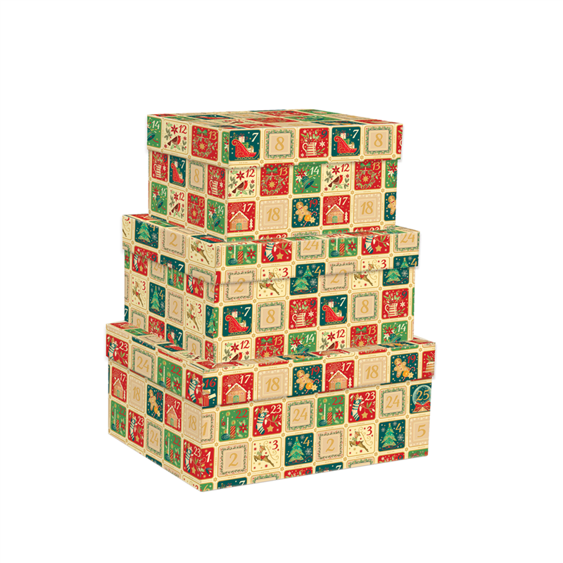 CHRISTMAS GIFT BOX DIMENSIONS 38X30X17 CM, PERFECT FOR THE CHRISTMAS COUNTDOWN. MADE WITH HIGH QUALITY MATERIALS, THIS ELEGANT PACKAGE COMBINES TRADITION AND REFINEMENT, IDEAL FOR STORING AND PRESENTING SPECIAL GIFTS DURING THE CHRISTMAS HOLIDAYS. DECORATED WITH FESTIVE MOTIFS, IT ADDS A TOUCH OF CLASS AND ANTICIPATION TO THE MOST MAGICAL TIME OF THE YEAR.
