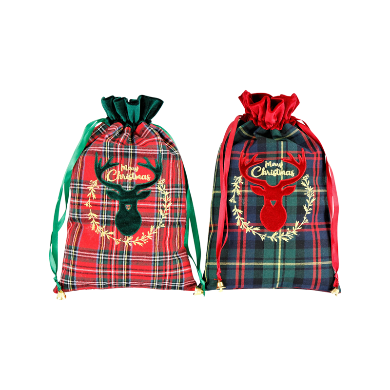 Plaid Fabric Bag With Reindeer 35cm Green Red Blue | | Hoff-Interieur