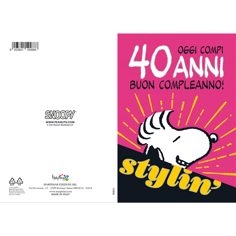 Birthday Card Snoopy 40 Years | Marpimar Editions | Marpimar Edizioni