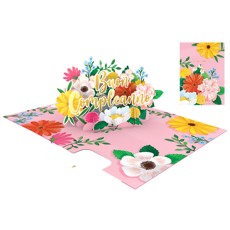 Biglietto Auguri Kirigami Fatto A Mano Buon Compleanno Fiori | Origamo