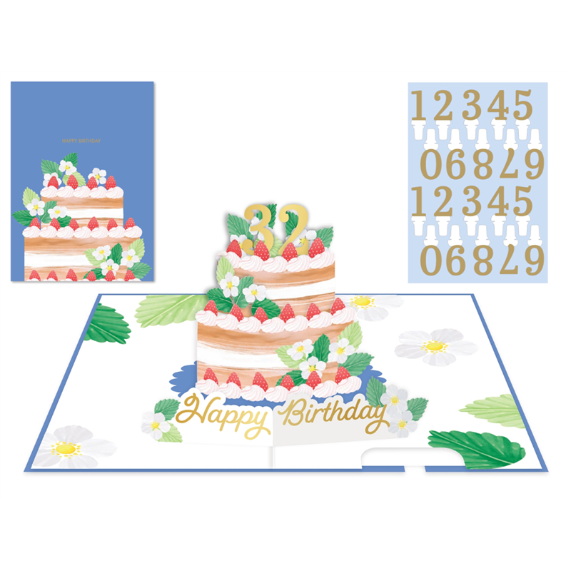 Popup Card Kirigami Handmade Happy Strawberries | | Origamo