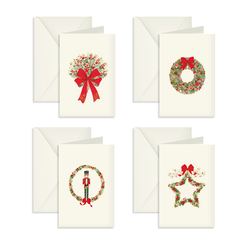 CHRISTMAS GREETING CARD FEATURING AN ELEGANT DESIGN WITH REFINED RELIEF DEPICTING GARLANDS AND BOWS. THE QUALITY PAPER SURFACE GIVES A TOUCH OF LUXURY, IDEAL FOR TRANSMITTING WARMTH AND JOY DURING THE HOLIDAYS. WITHOUT TEXT, IT OFFERS THE FREEDOM TO PERSONALIZE THE MESSAGE ACCORDING TO YOUR PREFERENCES.