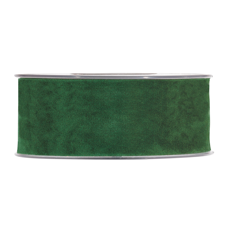 High-quality double velvet ribbon, measuring 40 mm in width and 7 meters in length, in an elegant dark green shade. Ideal for refined decorations, gift wrapping, craft projects, and creative setups. Available in the Vertecchi selection.